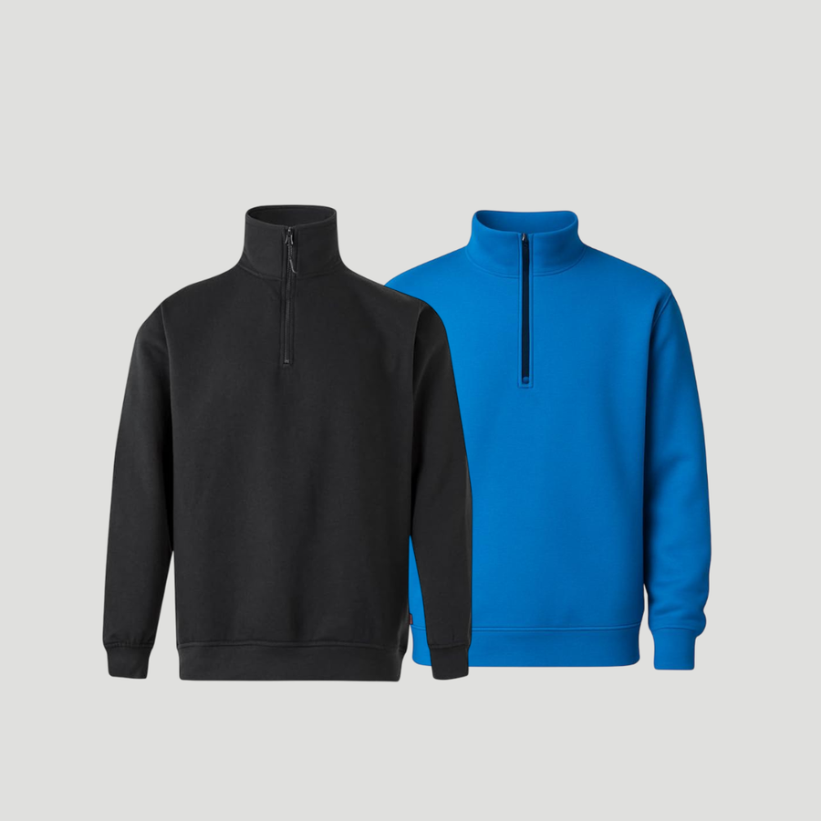 سويت شيرت Half Zip سادة بخامة قطن مخلوط (50% قطن – 50% بوليستر) لضمان الراحة والثبات